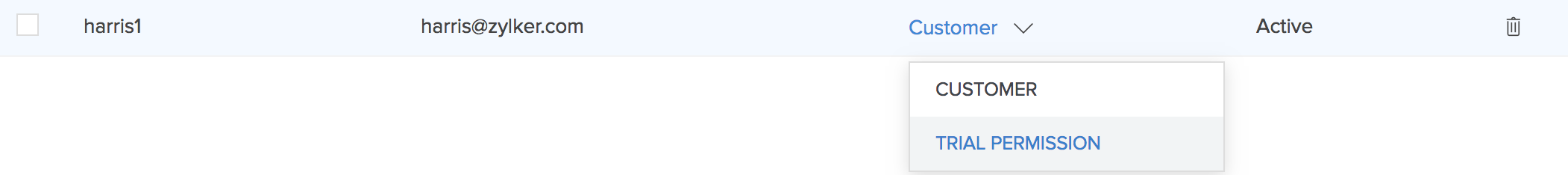 A drop down list will appear displaying the all the permissions available. Select the permission required for the customer.