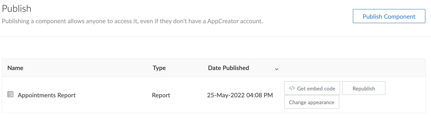 - If no component has been published yet, the page will inform you that no component has been published until now.