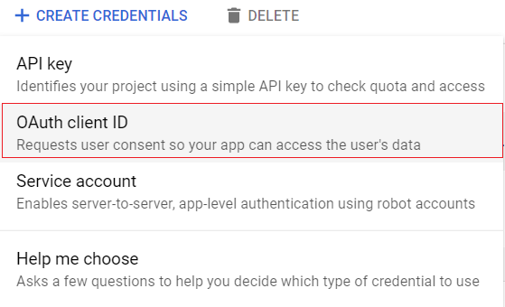 - Then click on OAuth Client ID option from the list.