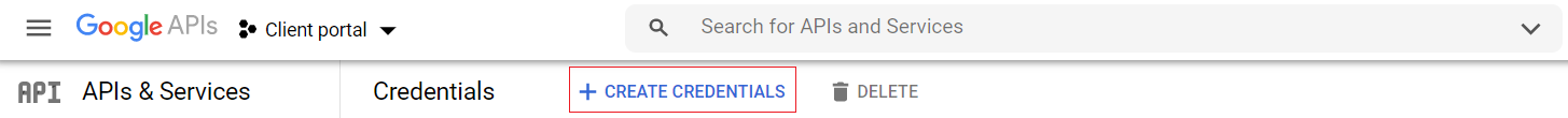 - In the Credentials page click on +Create Credentials.