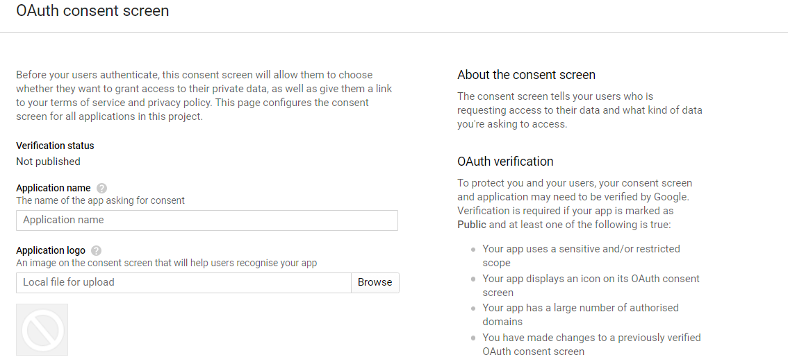 - The OAuth consent screen will be displayed. Enter the Application name and click Save.