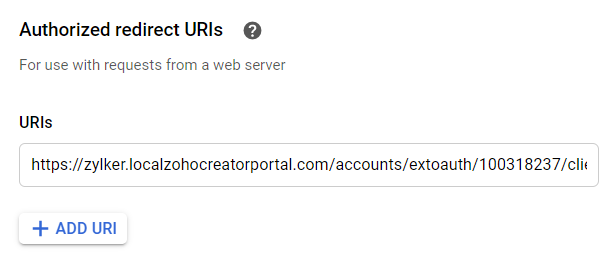- In the Authorized redirect URI field enter the Redirect URI copied from ManageEngine AppCreator.