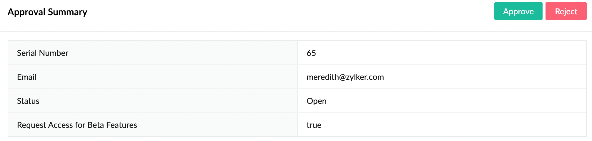 Upon clicking the Approval card, a new tab will open with the Approval Summary view, in which the record can be approved or rejected.