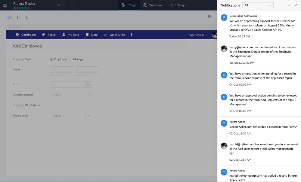 Notifications keep you in the loop about your account by providing instant alerts for specific activities. All your notifications are consolidated under the Notifications pane. You can view this pane by clicking on the Notifications bell icon, which will be visible across Development mode, and Live mode.