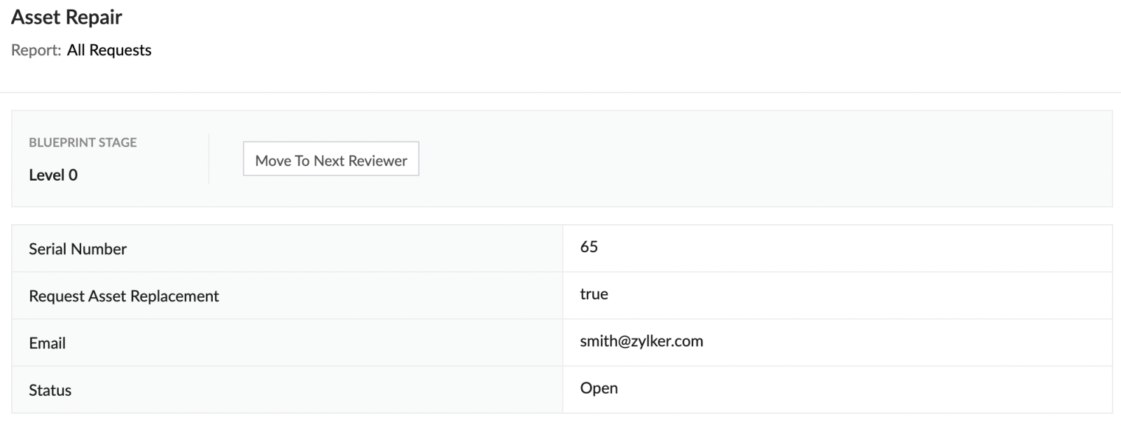 Upon clicking the Blueprint card, a new tab will open with the record summary view for record in which the transition has to be performed.