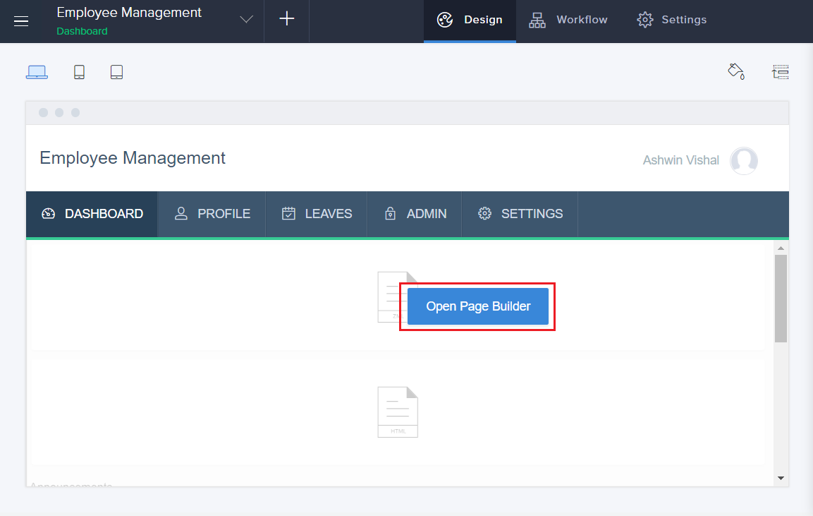- The created widget will appear. Drag and drop the widget into the builder area.
