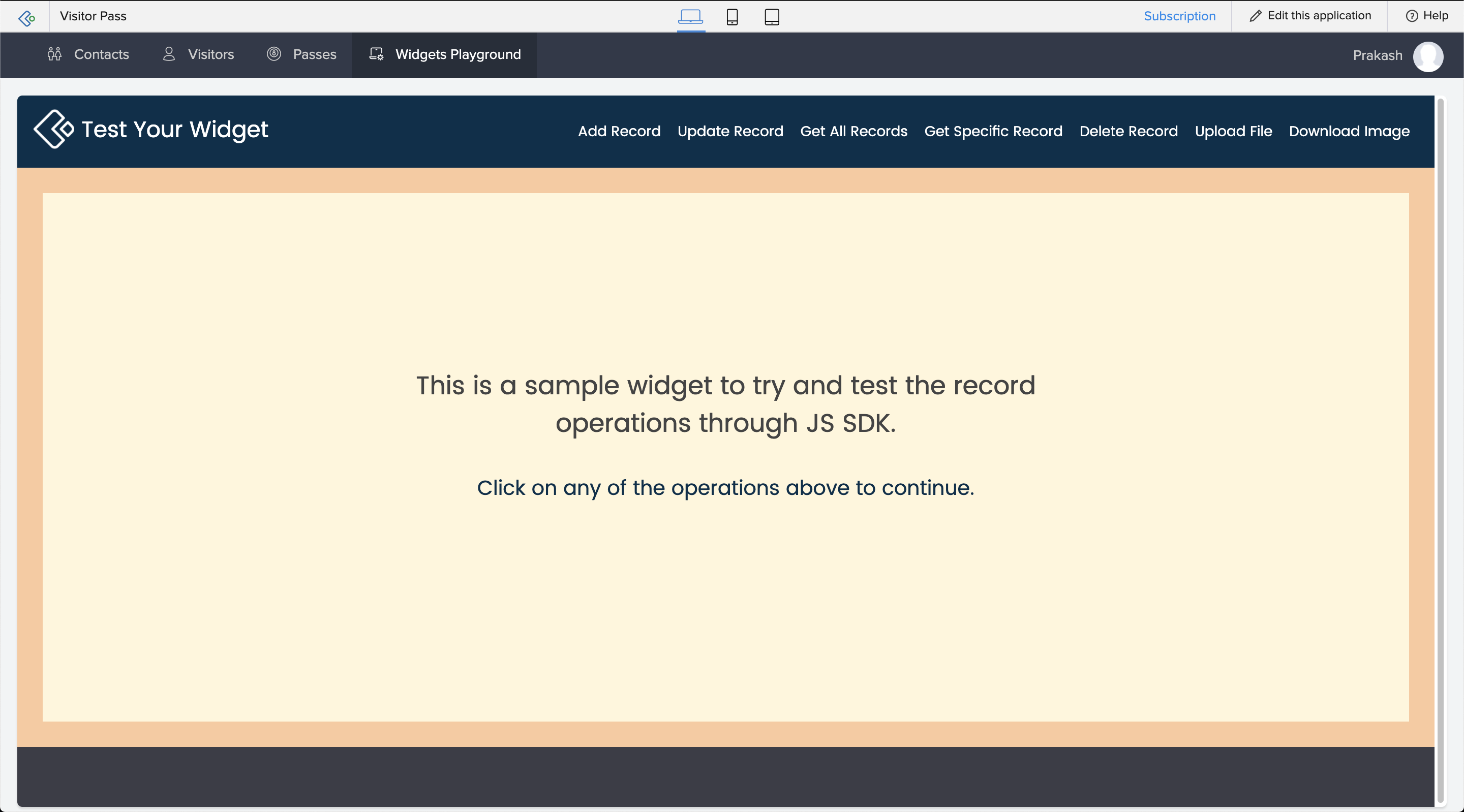 We shall learn to add a sample widget into your AppCreator application. The procedure is as follows: