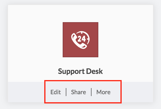 The options to edit, share, delete, duplicate and access settings of an application appears when you mouseover an application.