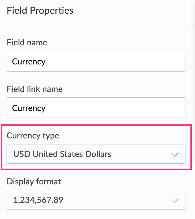 - Select the currency field.