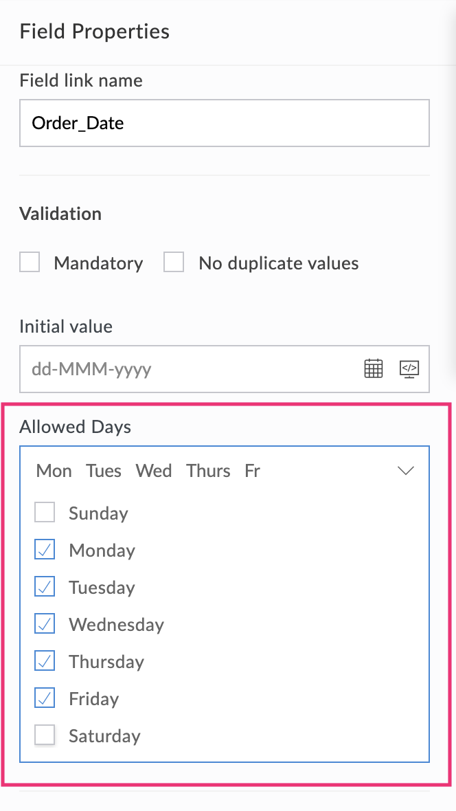 Set allowed days for date and date-time fields