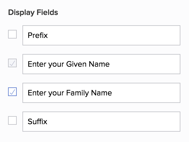 - You can enable or disable all subfields except First Name, which has a disabled checkbox next to it: