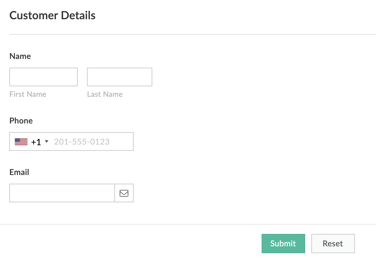 The section field enables you to arrange the fields in your form in sections, and thereby provide your users a visual grouping of fields. Below image shows a section field titled Customer Details, which contains other fields in it.