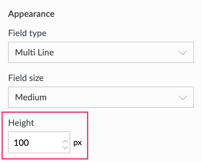 Applicable to the following fields: Multi line, multi select, and rich text.
