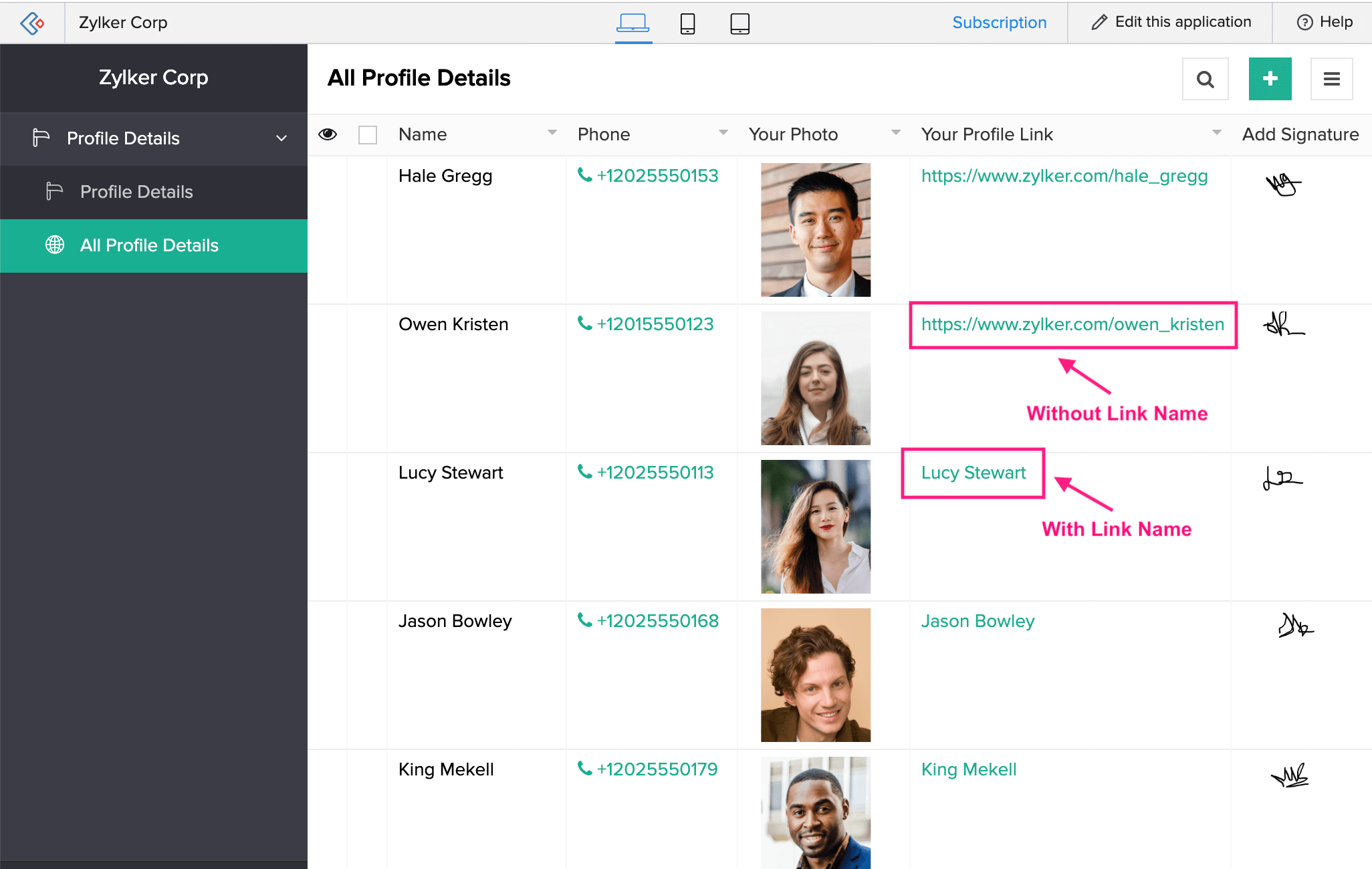 Recruitment management: Imagine that you are building an app to manage the recruitment process in your organization. You may add the URL field to the form (through which people submit their applications) to enable them to enter a link to their profile that’s present in an employment-oriented social networking website.
