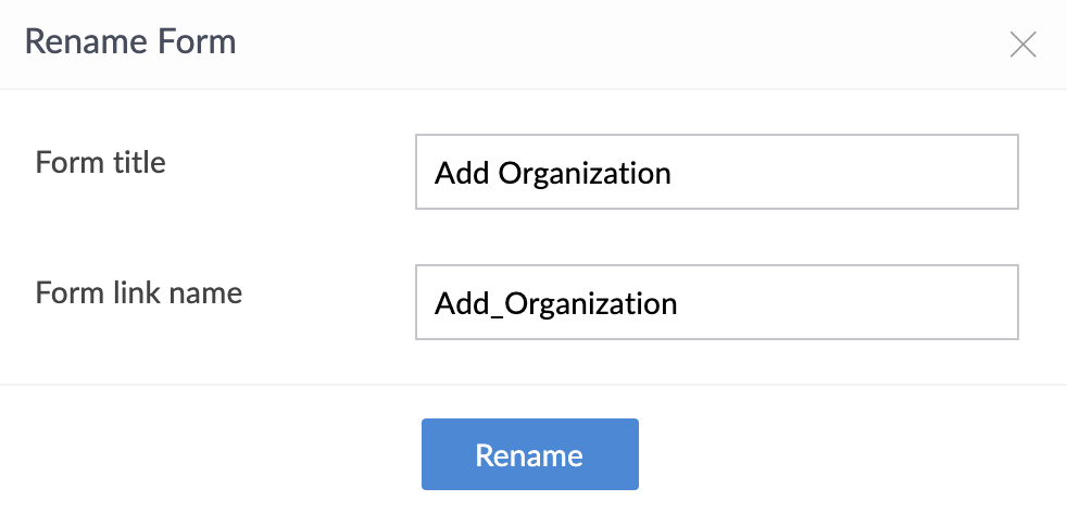 - Edit the Form Title and Form Link Name as required, then click Rename:
