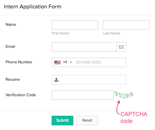 - When a user accesses your captcha-enabled form from a web browser, they will be able to submit data only when they correctly enter the displayed captcha code.