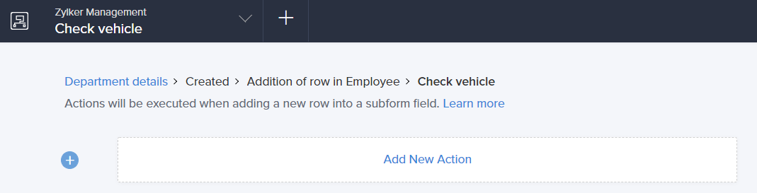 Click the Add New Action block. The Add New Action window will slide in from the right.