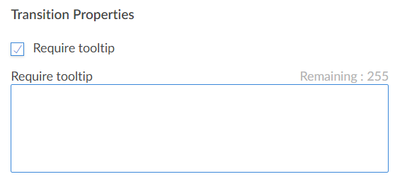- In the tooltip message field enter the message to be displayed when hovering over the transition. To enable it click on the checkbox. In the field enter the message to be displayed.
