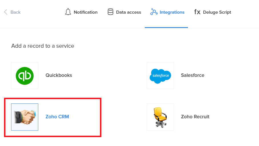 - Mandatory fields - These are the required fields in the chosen Zoho CRM module that must be mapped to a corresponding field in ManageEngine AppCreator. The drop-down lists the fields on your AppCreator form. Select the required field. Note: The mandatory fields vary based on the selected service and module.