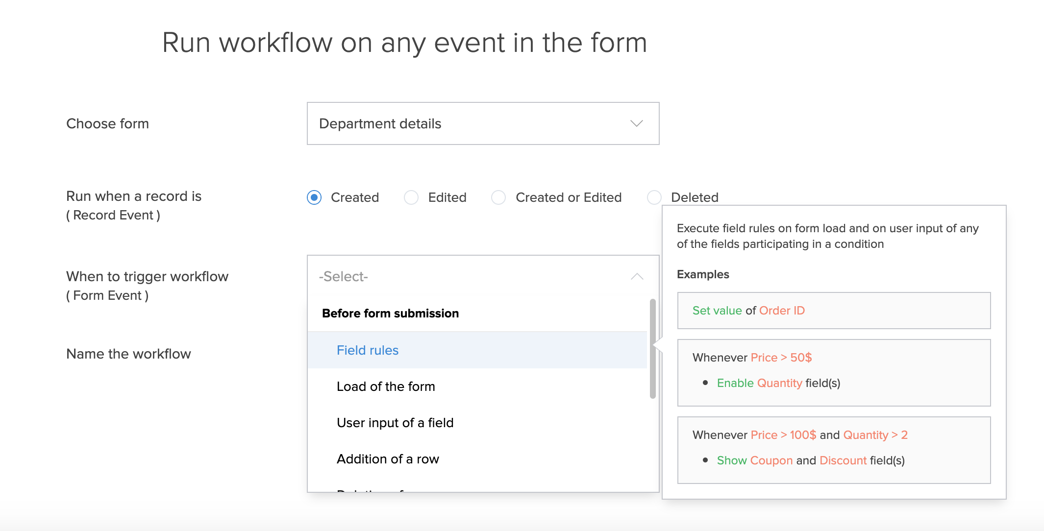 - While creating a new workflow choose the Field rules option in the When to trigger workflow dropdown.