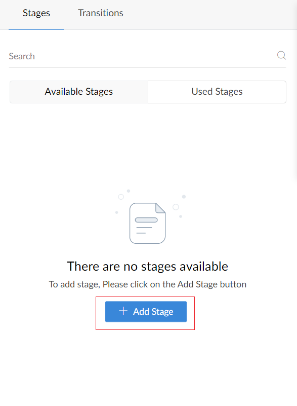 - Under the Stages section, a list of stages will be displayed. Click on Add stages to create new stage.