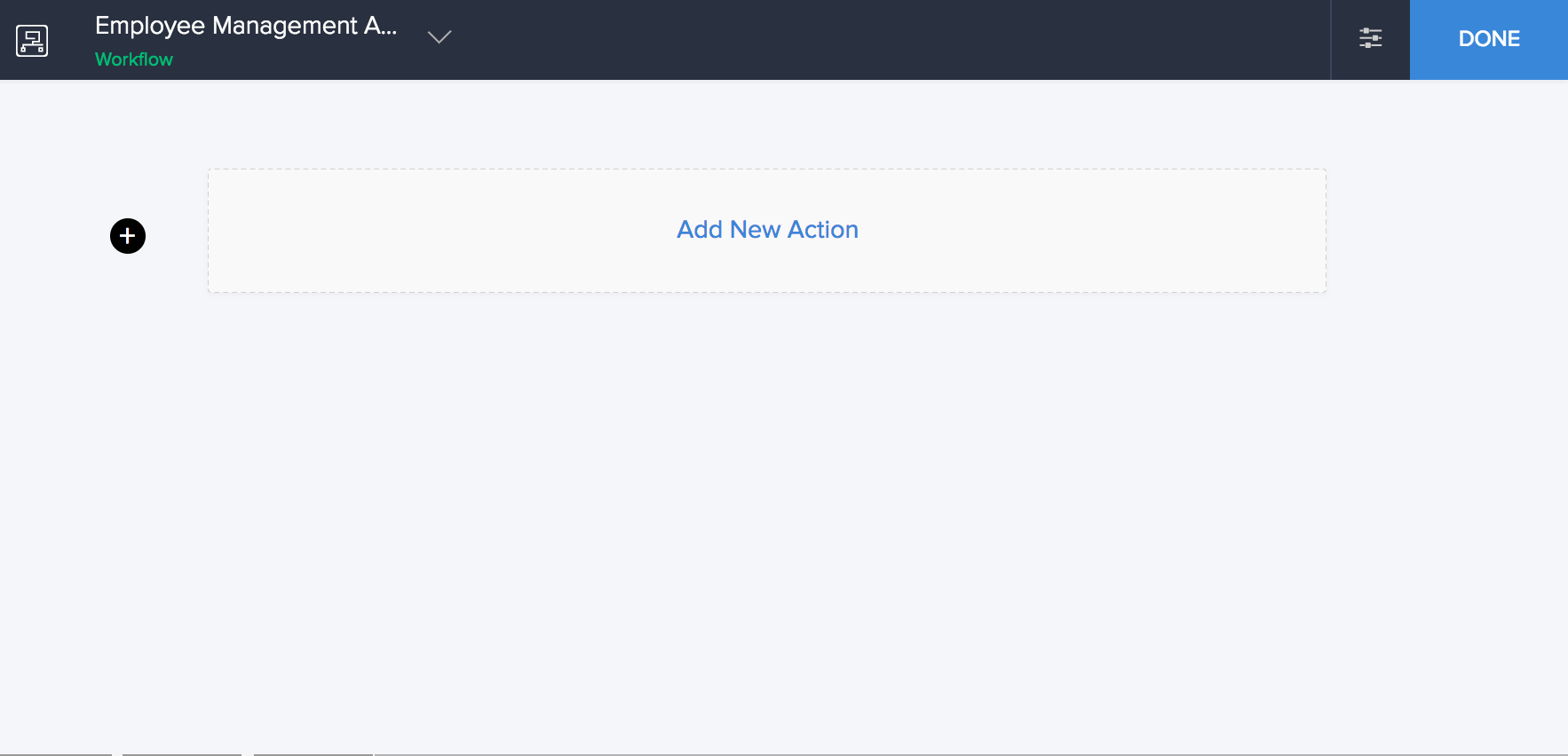 - Click the Add New Action block. The Add New Action window will slide in from the right.