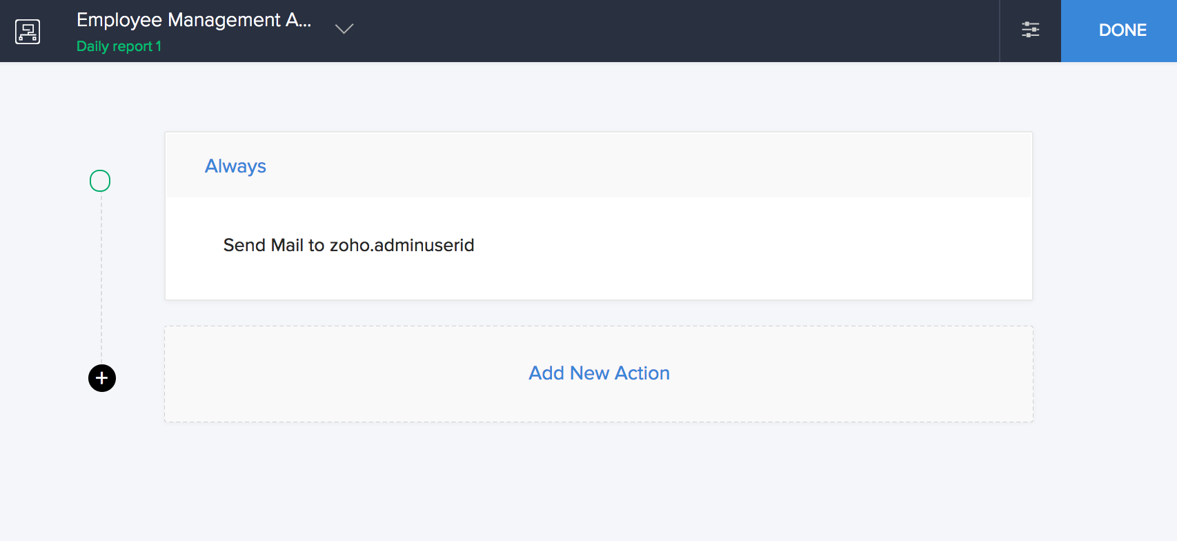 - ManageEngine AppCreator executes the action for all records by default whenever there is an activity on the form. You can run the action for selected records by setting criteria. Refer to the Set criteria page to learn more about setting criteria in a workflow.