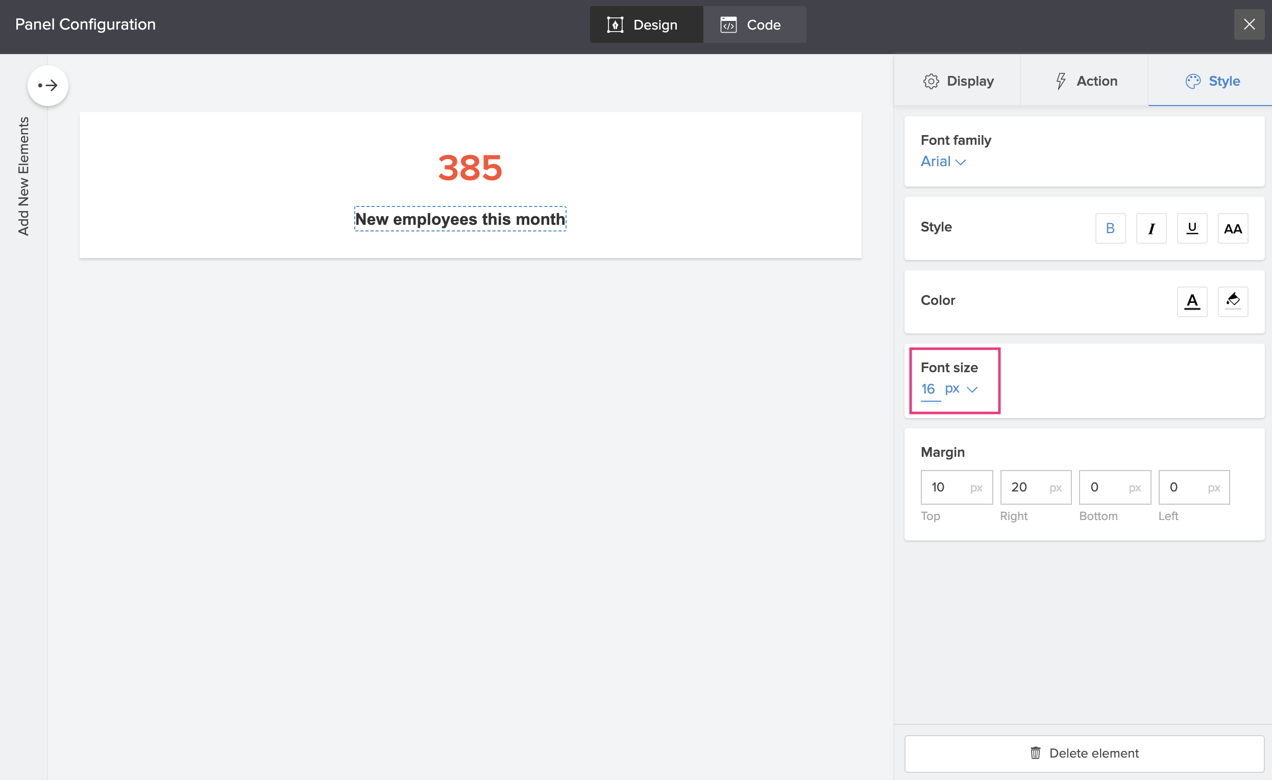Customize the text displayed in a panel by adding fundamental styling to them. You can style a panel's text by adding details to its font family, size, colour and more.