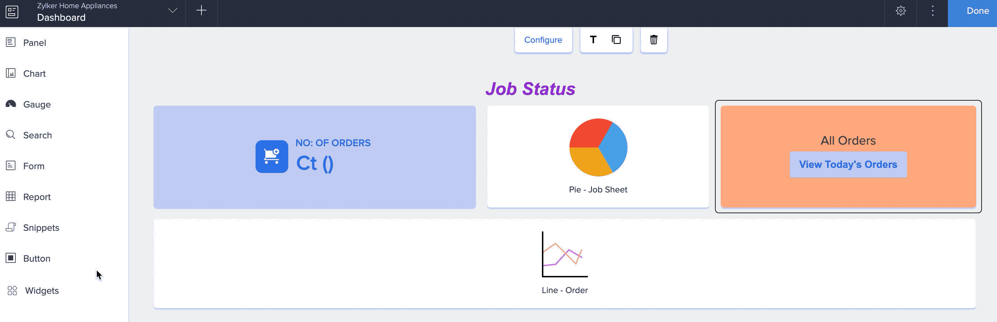- Single click to select the element to be duplicated.Note : Page elements such as panel, button, form embedded as a button, and report embedded as a button can only be duplicated.