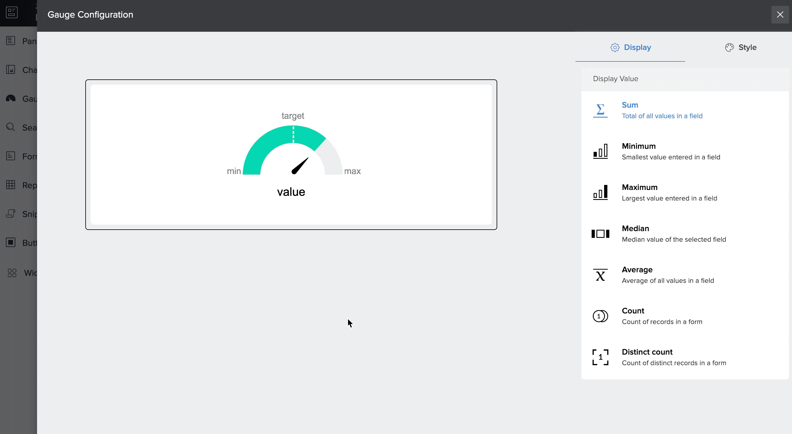 - Under the Value section, you can customize the style, font-color and font-size of the display data type chosen for your gauge.