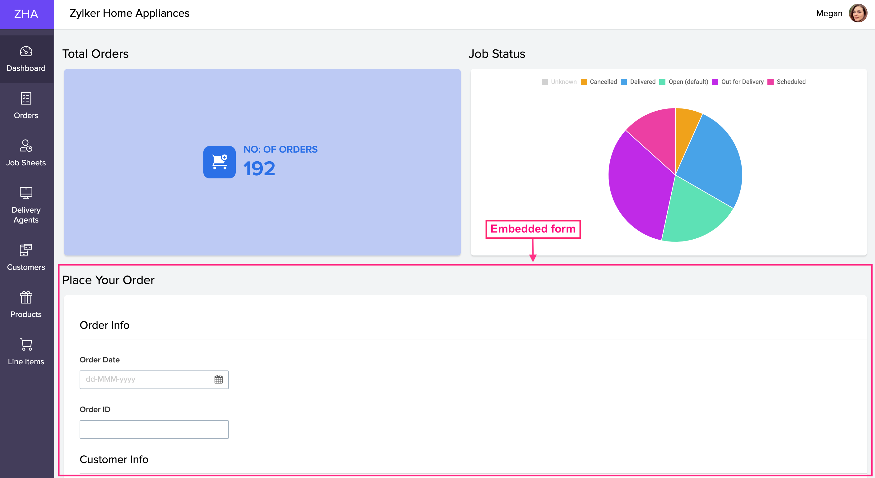 A form, belonging to any of your applications can be embedded into a page created in another application. You can configure certain properties to this form at the page-level and also define field values to be pre-filled upon loading your form. Learn how
