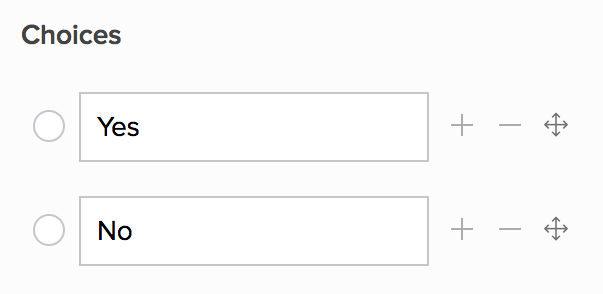 - Navigate to the Field Properties > Choices section on the right, then set the choices as shown below