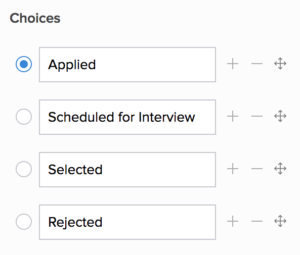 The Application Status field in the Application Form is meant to track the candidates' progress in the recruitment process. It's a field that must not be exposed to the candidates when they submit the form, but must be visible to the recruitment executive and the manager.