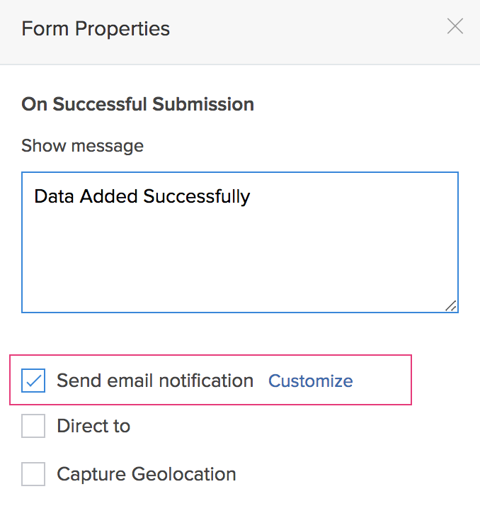 - Check the checkbox next to Send email notification, as shown below. The Customize link will appear: