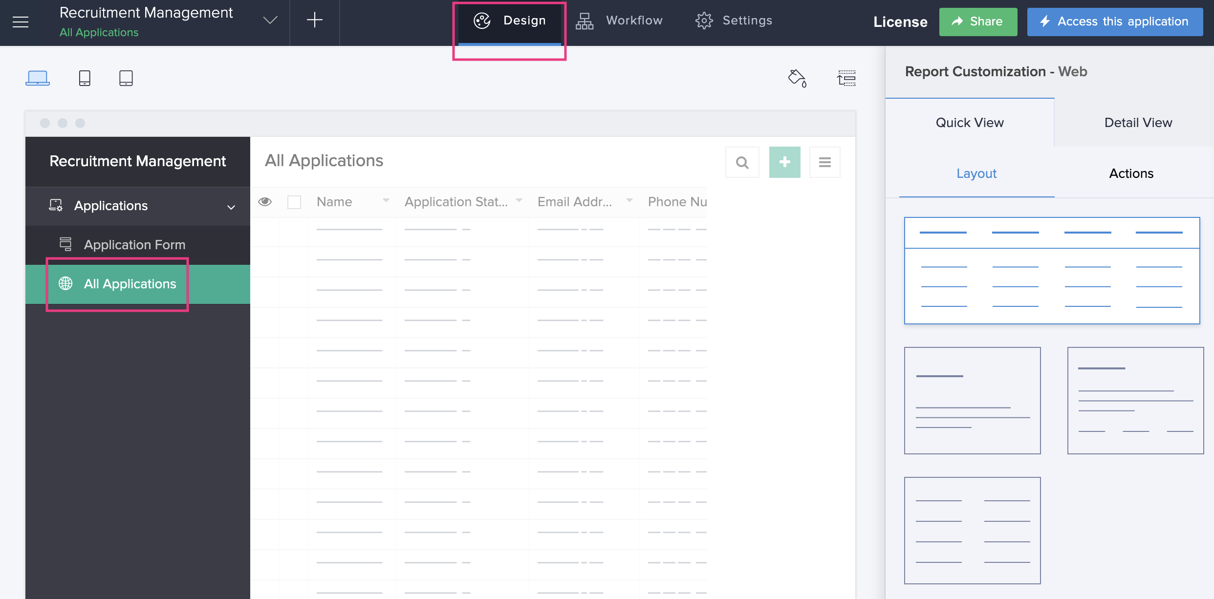 The view that you see on accessing the All Applications report, is its Quick View. The Quick View of a report enables your users to view multiple records in one glance.