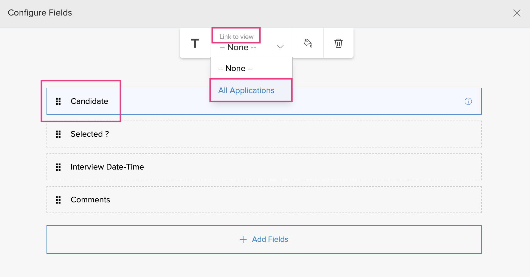 - Click the Close icon at the top-right corner of the Configure Fields pane.
