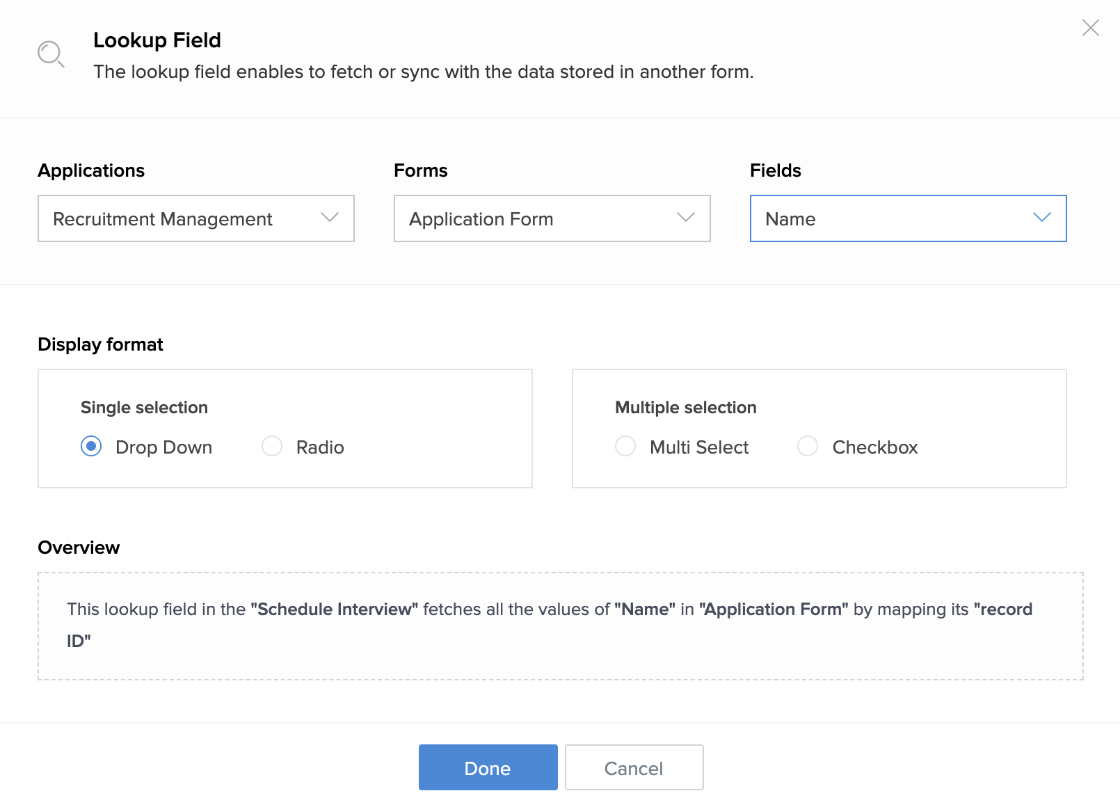 Each entry submitted through a form is called a record. Just like how a spreadsheet has columns, forms in ManageEngine AppCreator have fields.
