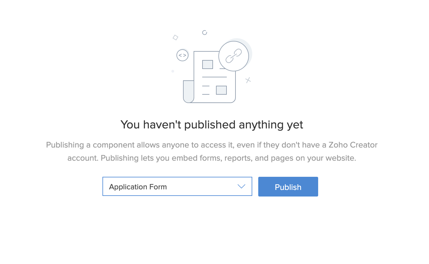 By default, your app can be accessed only by the users with whom you've shared it. However, as mentioned in the requirement-solution mapping section, the Application Form needs to be made publicly accessible. ManageEngine AppCreator enables this using the Publish feature. To publish this form: