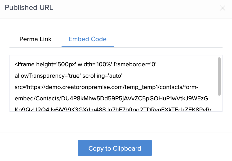 - Copy the Perma Link that appears in the Published URL pop-up window.