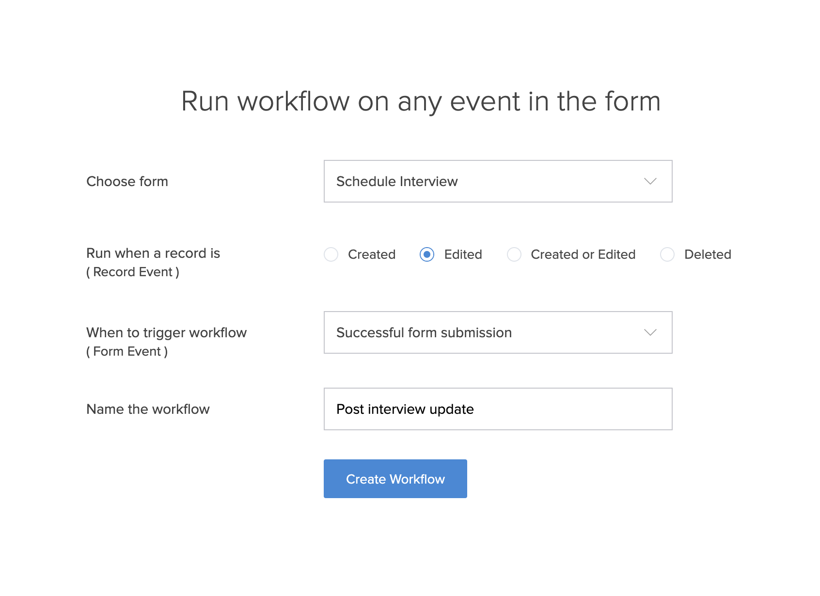 - Set the workflow's name as 'Post interview update', then click Create Workflow:
