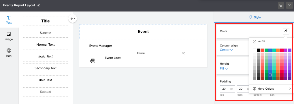 When you access the application, the quick view of your report will be displayed in this custom layout.