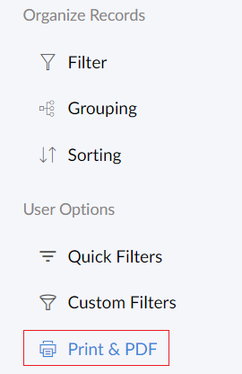 The Record Templates page (under Report Properties) will also display the templates you create (for the corresponding form) under your app's Settings > Record Templates. You can edit, delete, and duplicate all templates except Detail View.