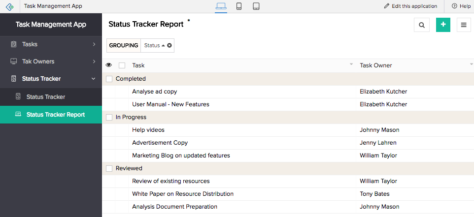 Grouping indicates categorizing information into clusters, based on field values that help you define the groups. By grouping your data, you can achieve a certain level of structurally classified information. The header row of your report features the group option in each field. Selecting the preferred order of grouping for the required field reorganize the records based on the values of that particular field.