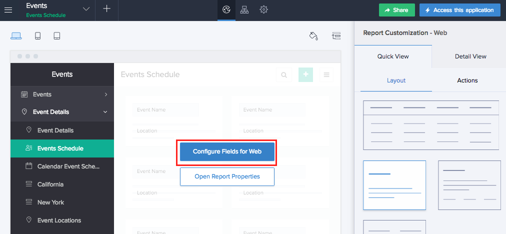 - Click the Configure Fields for Web button. The Configure Fields window will appear.