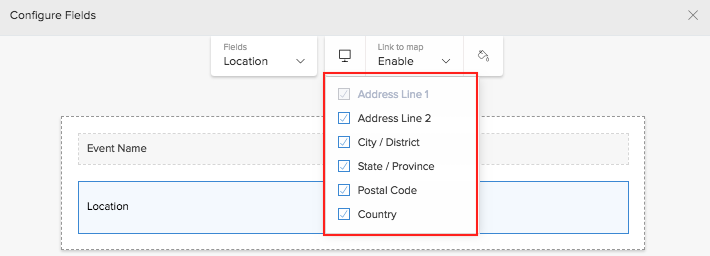 Select the address field in the fields section to define properties specific to it.