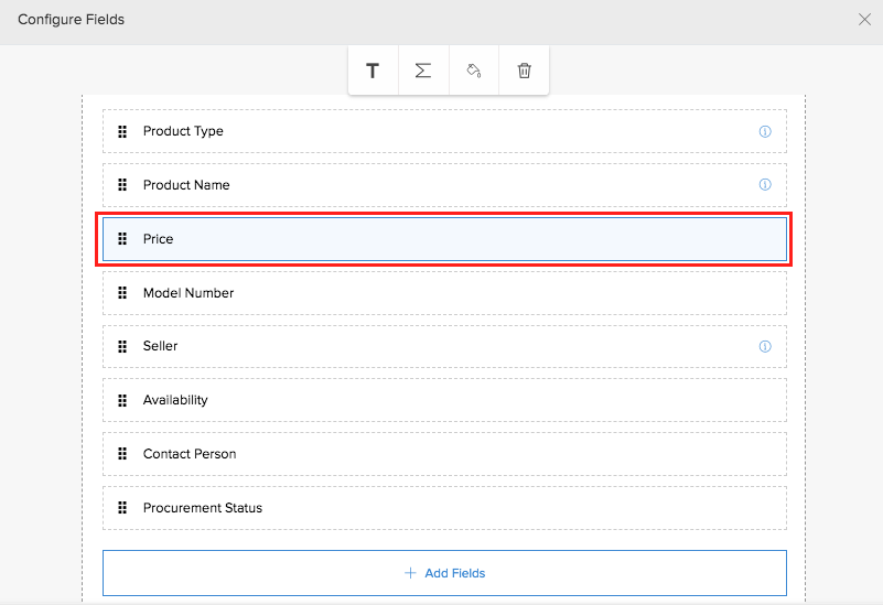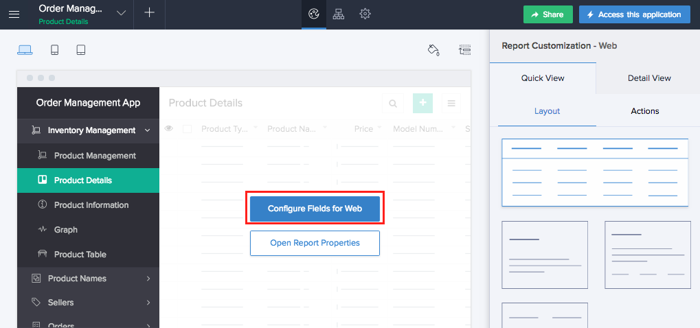 - Click the Configure Fields for Web button. The Configure Fields window will appear.