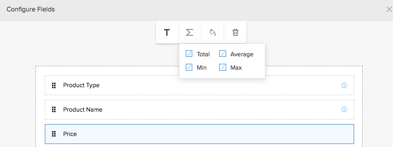 Note: The aggregate functions are applicable only for tabular layout of quick view.