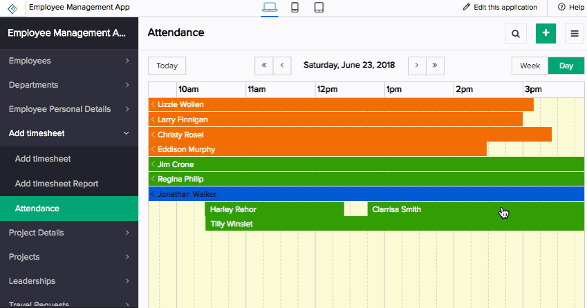There are actions that are applicable to the records in the the quick view. You can perform an action to a record on making the gesture that allows you to use the actions. Let's assume that you have an Employee Management application in which you have an attendence report that features the in-time and out-time of employees. In that report, you have to make changes to an employee's record because the entry displayed wrong out-time. Right click on the record and select edit. The form of that record appears. Edit the out-time field value and update. The change will reflect in your report.