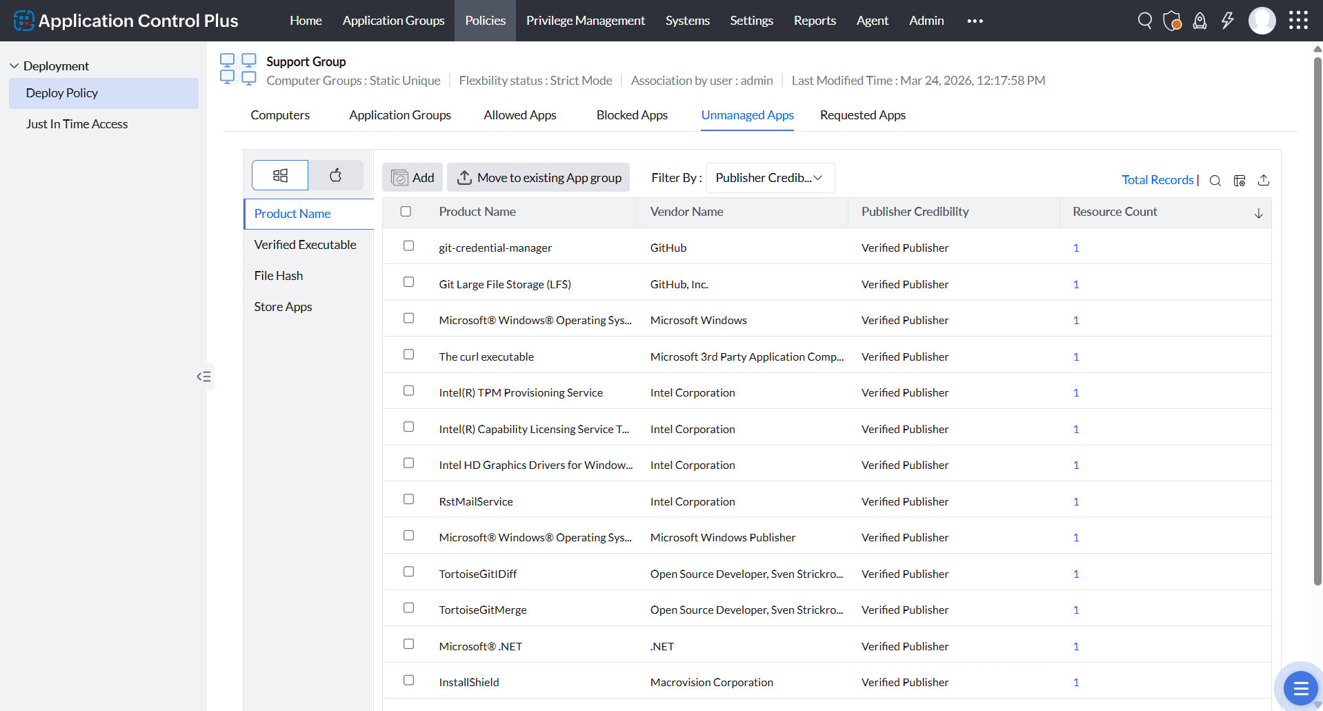 See what would be blocked before enforcement. Track unmanaged executions and block attempts.