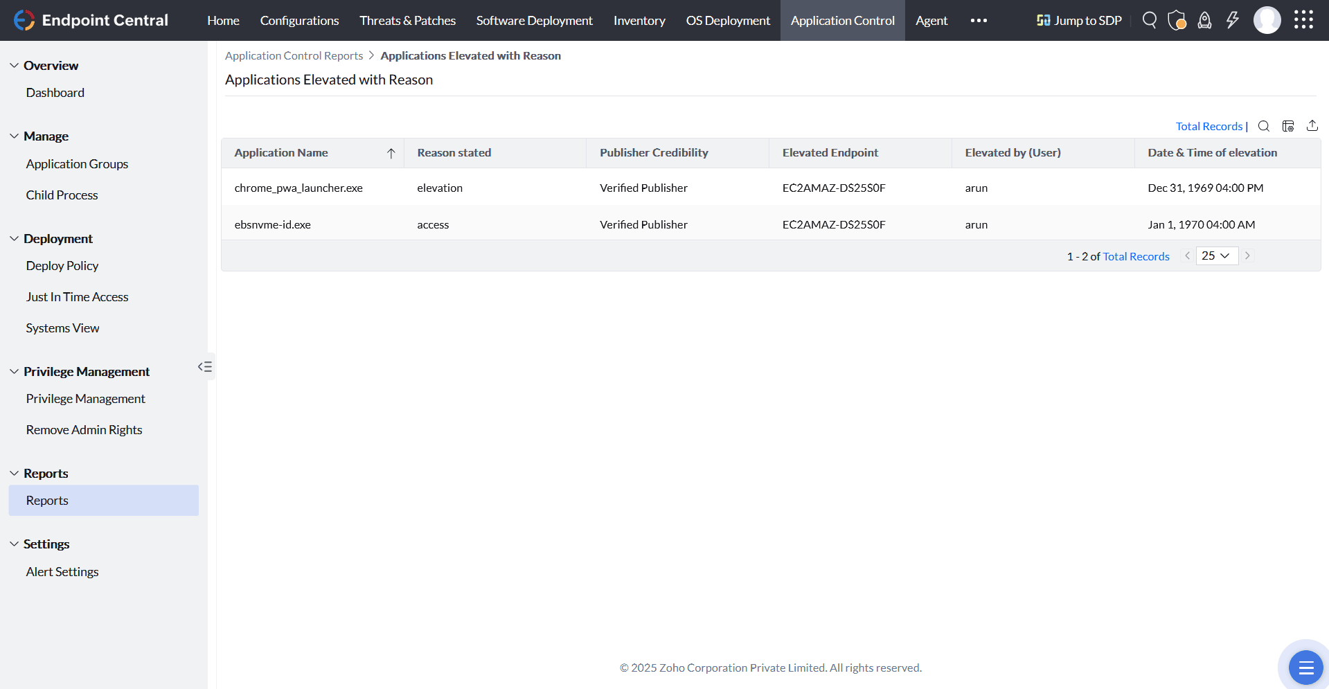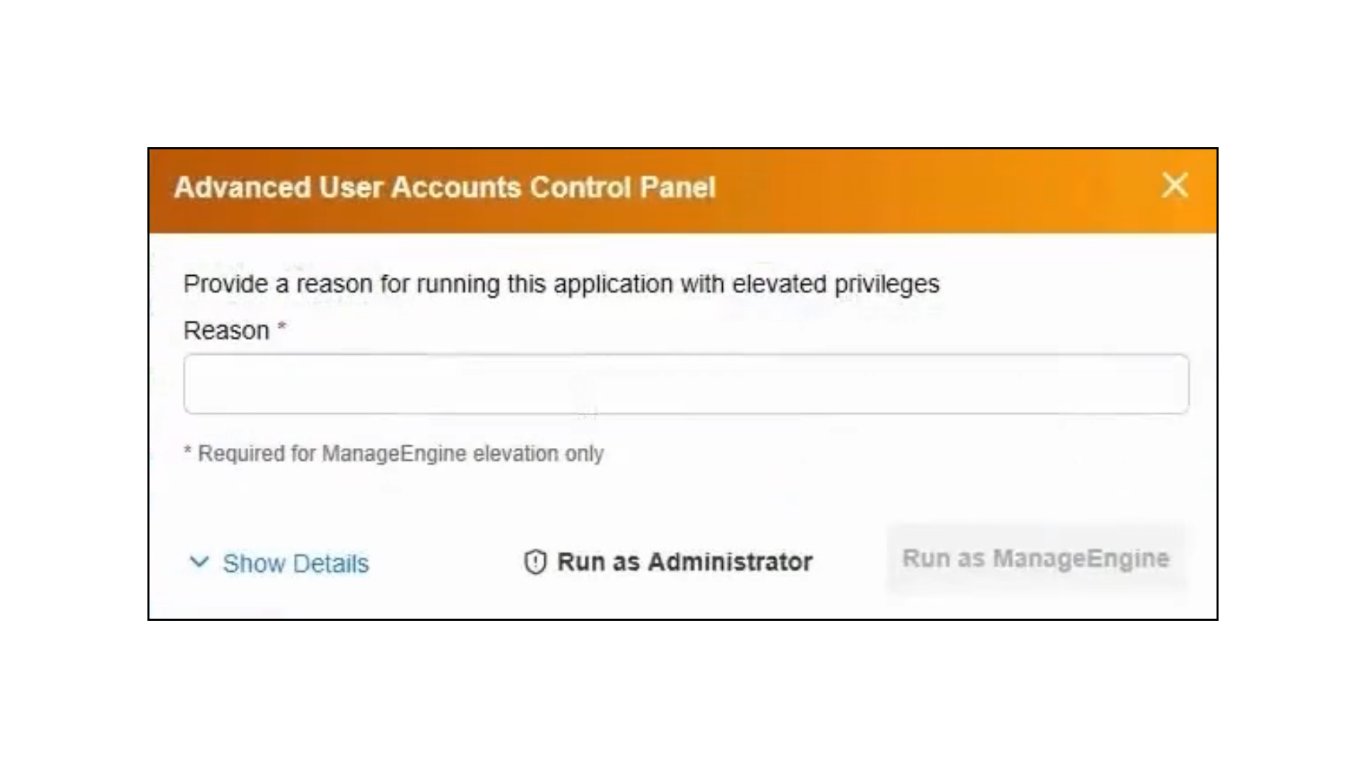 ManageEngine Application Control Plus' endpoint privilege management enables standard users to temporarily elevate their access within specific applications by providing a valid justification. This allows IT teams to maintain a least privilege model while still giving users the flexibility they need. Admins can also use this feature to audit which applications are frequently requested with elevated access—making it easier to fine-tune policies and spot trends in usage.